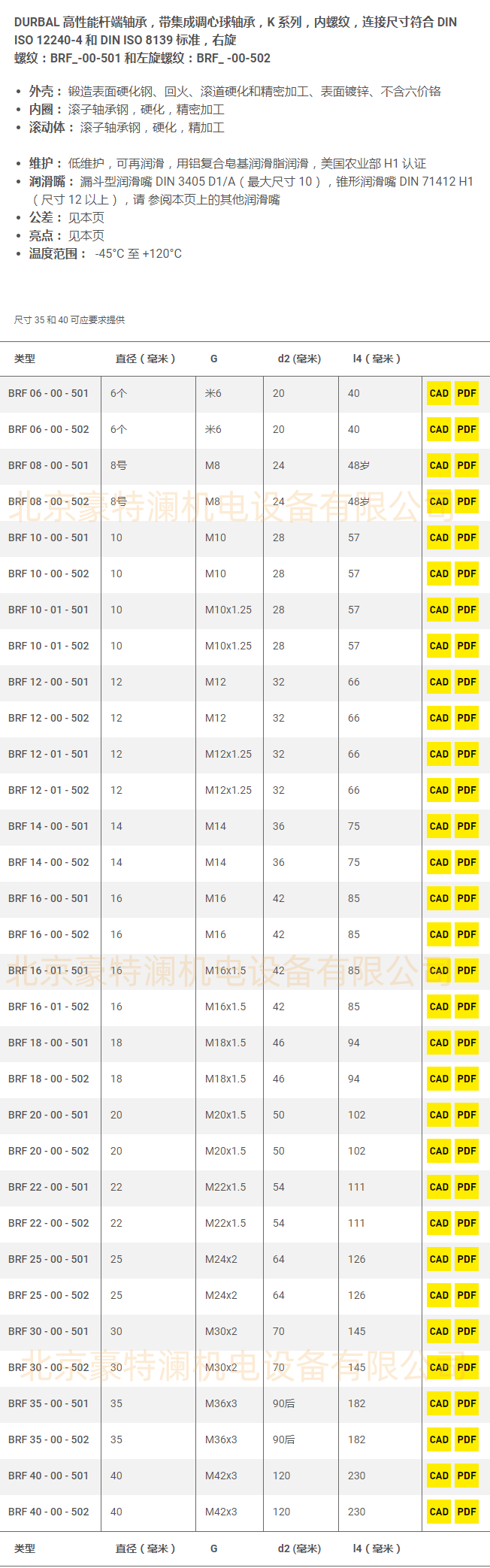 • BRF18-00-501BRF18-00-502德國durbal桿端關節軸承尺寸參數