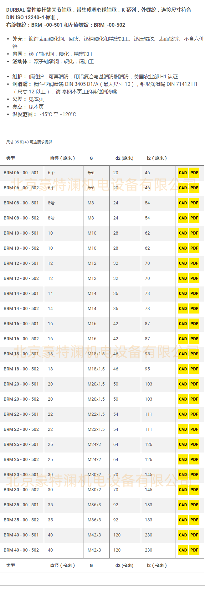 BRM18-00-501 BRM18-00-502德國durbal桿端關(guān)節(jié)軸承尺寸參數(shù)