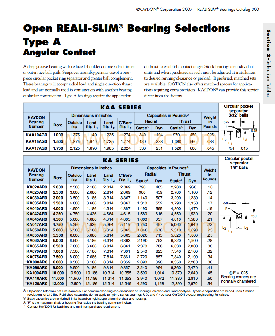 美國KAYDON薄壁軸承KA065AR0 KA070AR0 KA075AR0尺寸參數