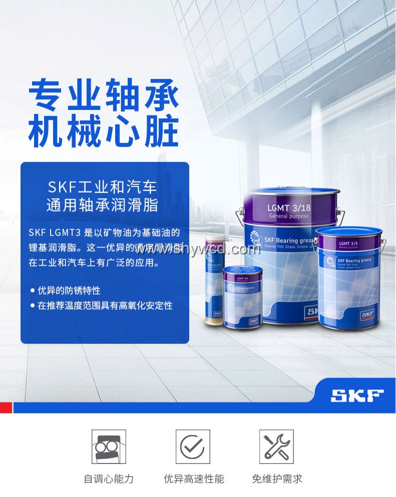 • SKF工業(yè)和汽車通用軸承潤滑脂 SKF潤滑脂是以礦物油為基礎(chǔ)油的鋰基潤滑脂。這一優(yōu)異的通用潤滑脂在工業(yè)和汽車上有廣泛的應(yīng)用