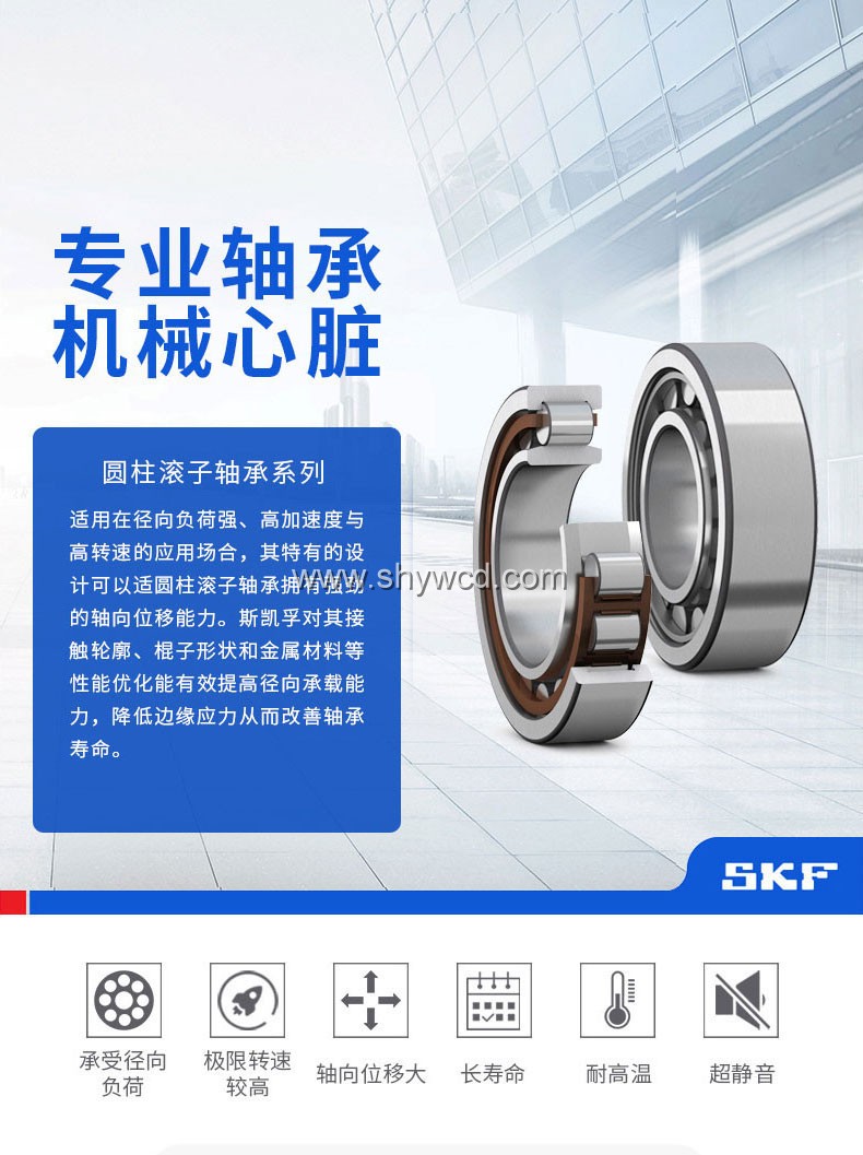 3. N型及NU型可軸向移動,能適應因熱膨脹或安裝誤差引起的軸與外殼相對位置的變化,可作自由端支承使用。